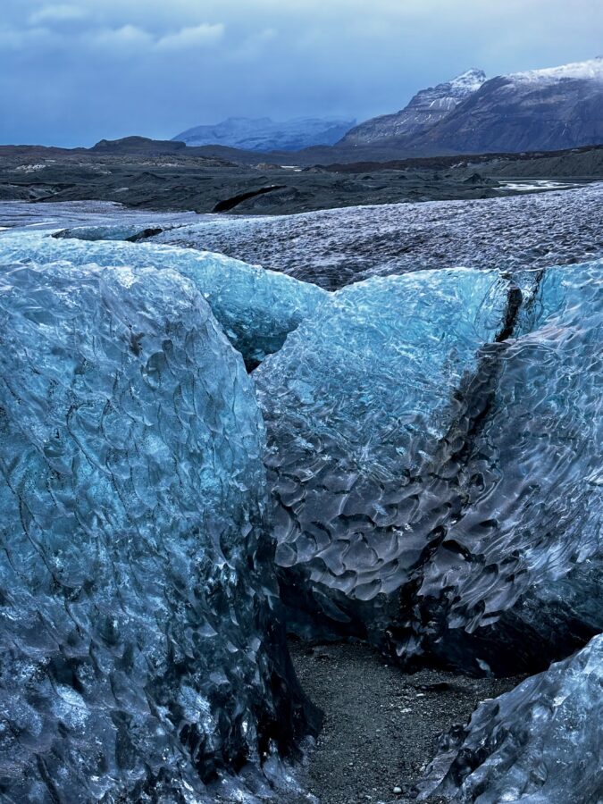 Glaciers look like frozen playgrounds for giants, until you realize you are not a giant and ice is very unforgiving. Walking on them with crampons is a workout for muscles you didn’t know existed. But once you get the hang of it, it’s not all that hard. If you go on one of the guided tours, they will give you instructions on how to walk on the ice. You will be provided with crampons that really give you grip, even on inclines.
