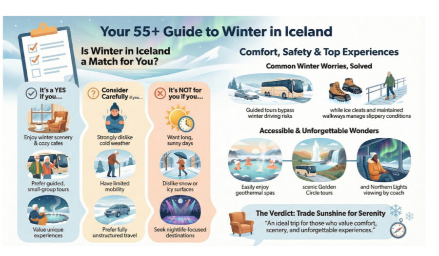 Put simply: Iceland is accessible, memorable, and very doable at 55+ — but it is not a slippers-and-sun-lounger sort of destination.